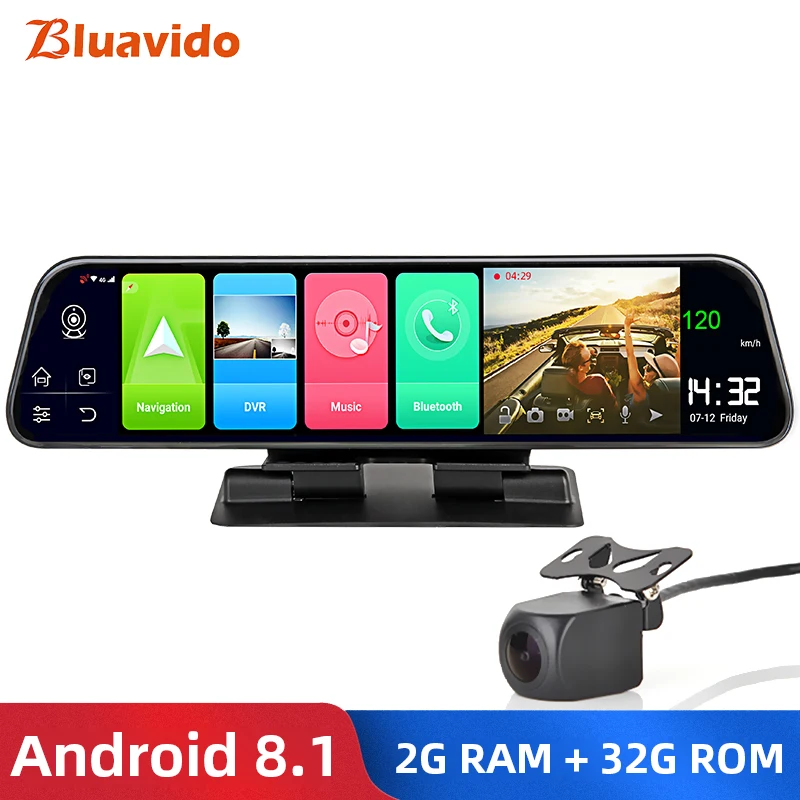 New Bluavido 12" ips rear view mirror car camera 4G Android 8.1 GPS Navigation 2G RAM 32G ROM ADAS FHD