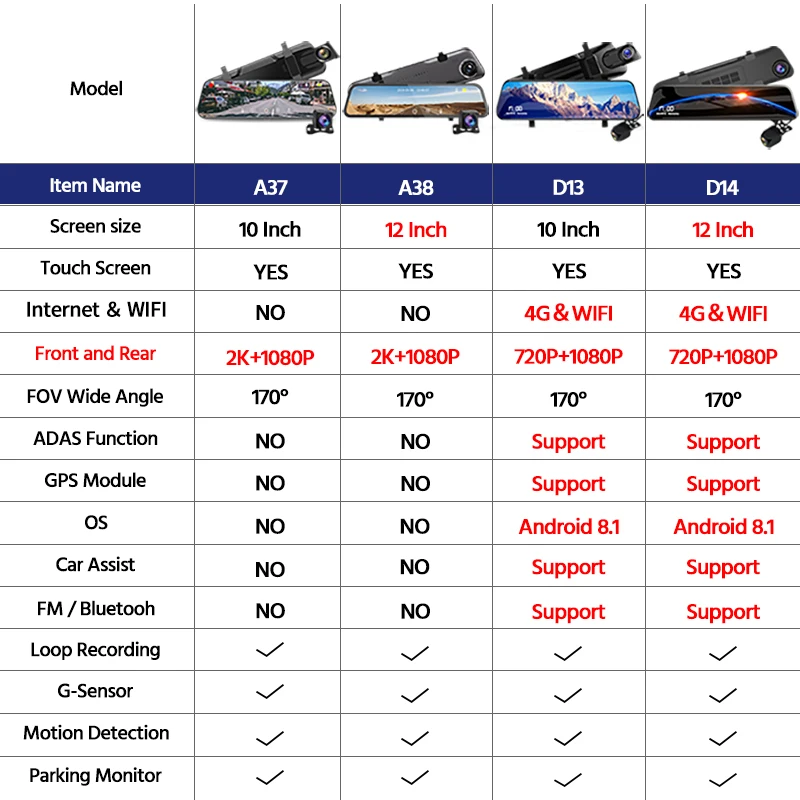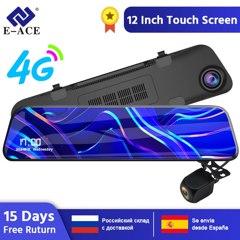 Buy E-ACE Car Dvr FHD 1080P Rear View Mirror Dual Lens DashCam Night Vision Registrar Android ADAS Vide