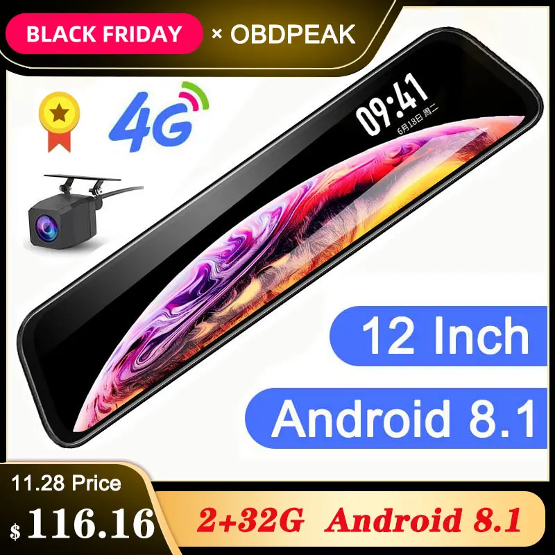 Promo Latest 12 Inch 4G Android Rearview Mirror Car DVR HD 1080P GPS WIFI ADAS Dash Cam Dual Lens Recorde