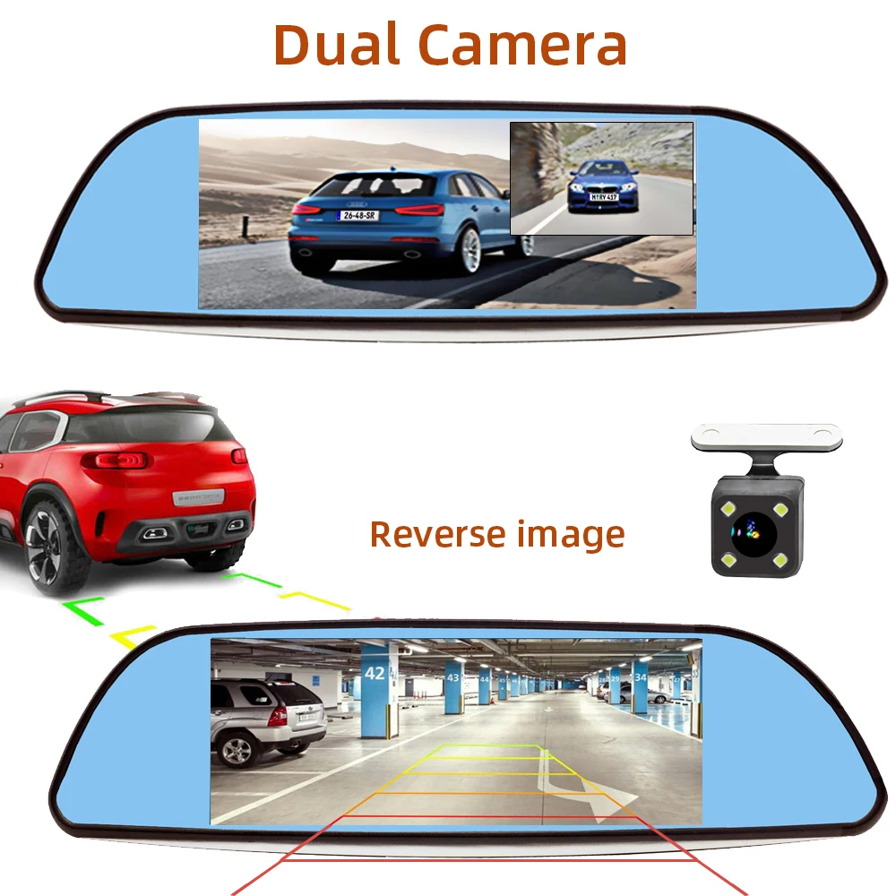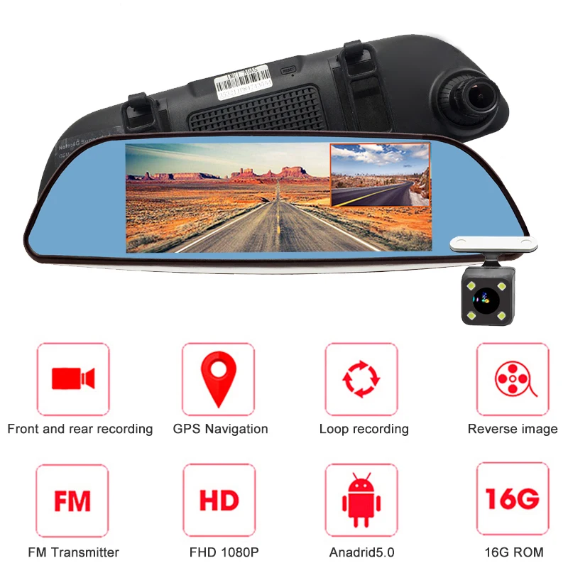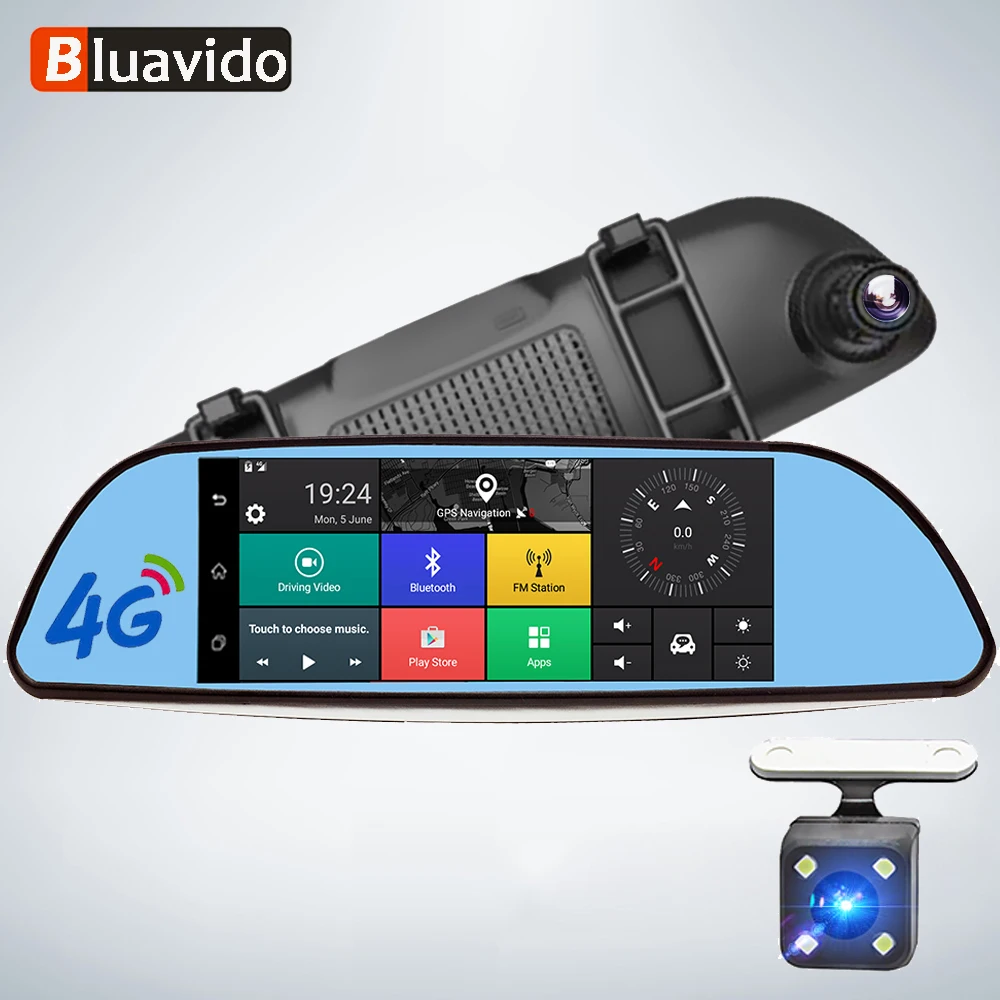 New Bluavido 4G ADAS Android DVR 7" Rear View Mirror GPS Car video Recorder FHD 1080P Dash Cam With rev