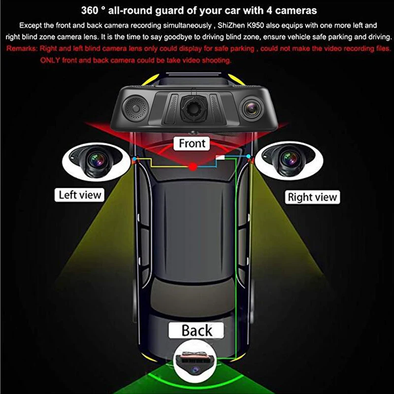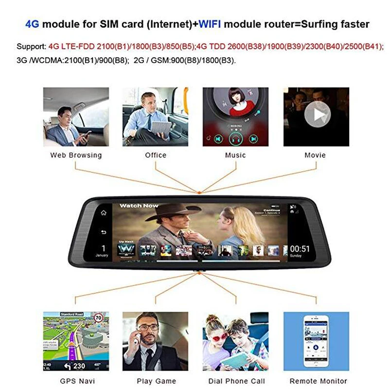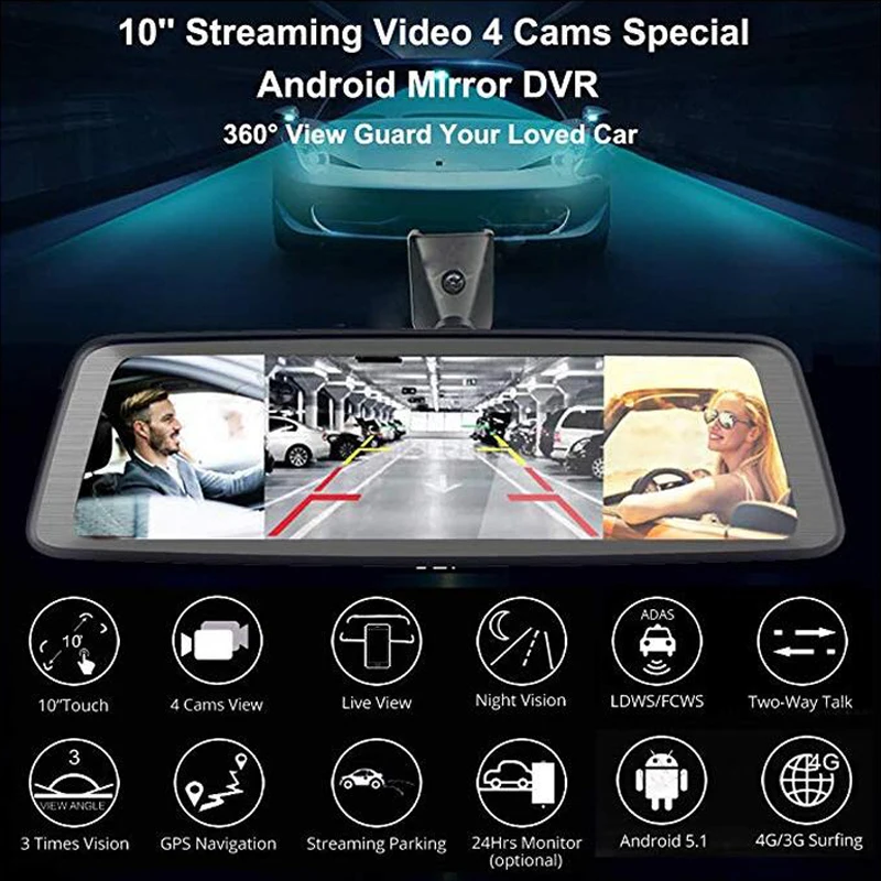 Buy WHEXUNE 10" Touch ADAS Android 5.1 Full 1080P Car Dash Cam 4G Video Recorder Rearview mirror with D