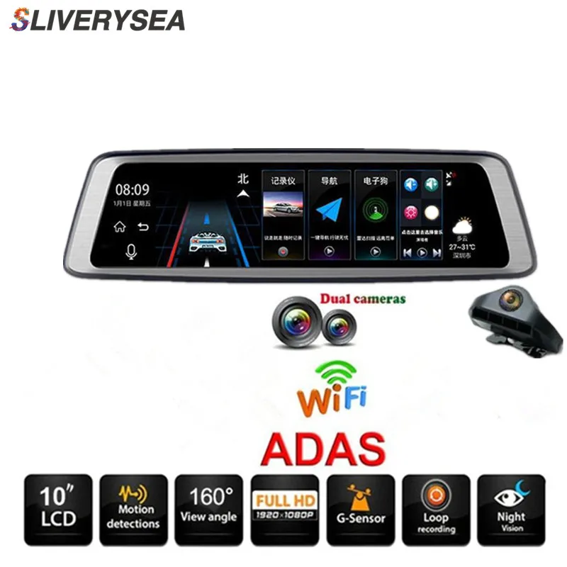New 10" Touch Screen Bluetooth WiFi 4G Android Car DVR Camera 1080P Full HD Rear View Video Recorder Re