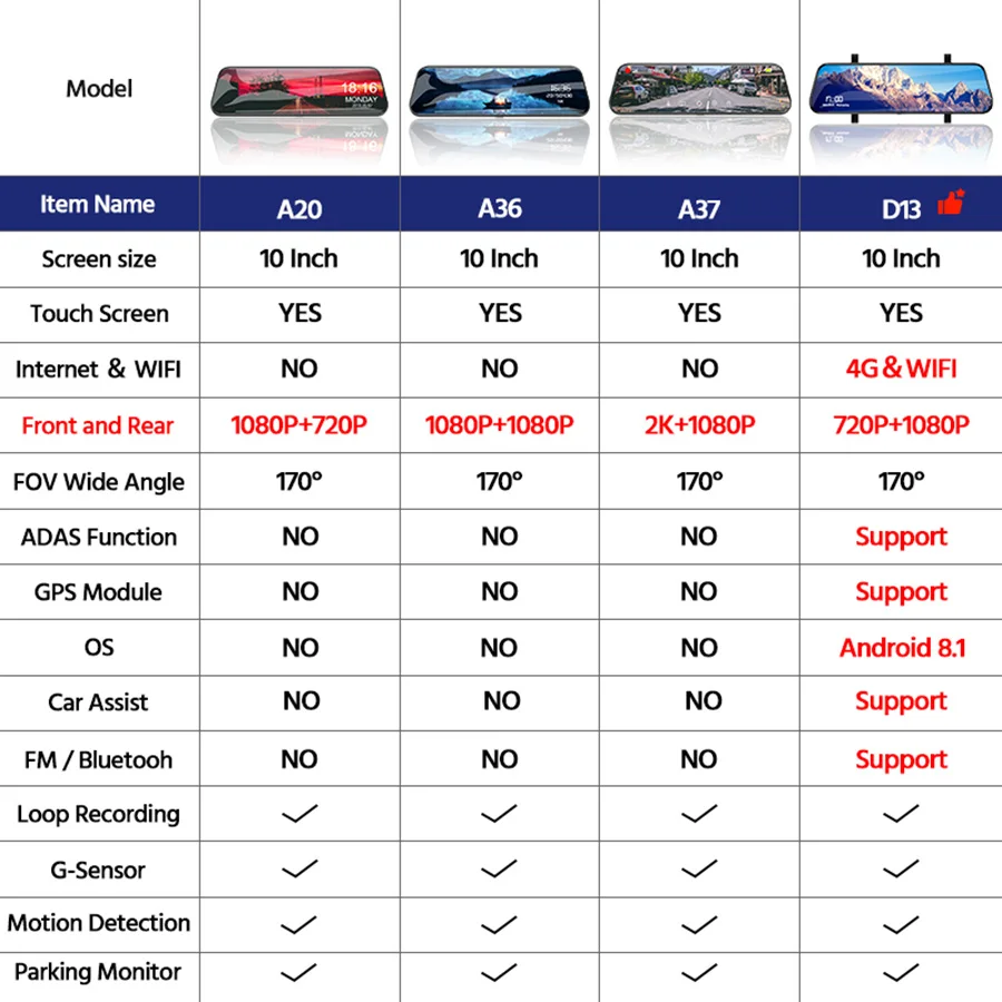 Best E-ACE Car Dvr 10 Inch Rear View Mirror 2K Car Camera Dual Lens DashCam FHD 1080P Auto Registrar And