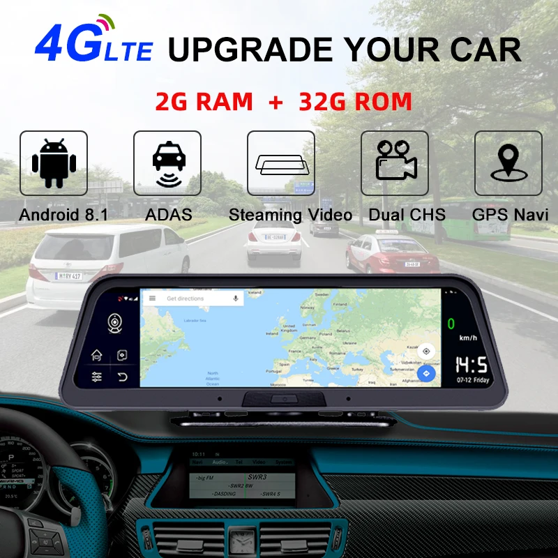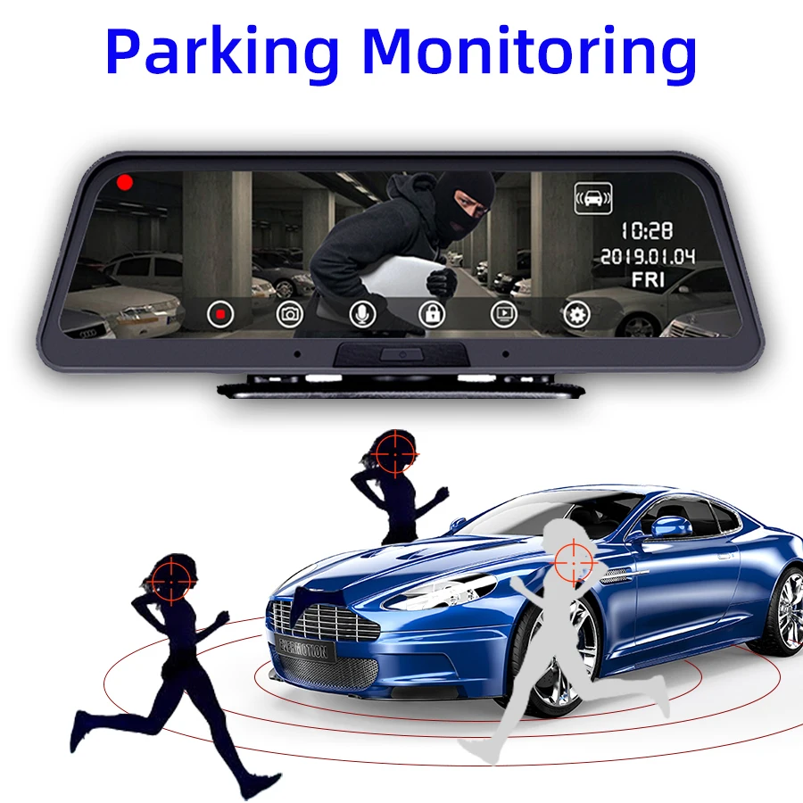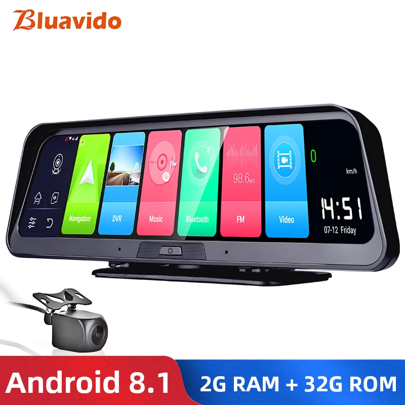 New Bluavido 10" IPS Car DVR Camera GPS 4G Android 8.1 ADAS FHD 1080P Dash cam Dual Lens car video Reco