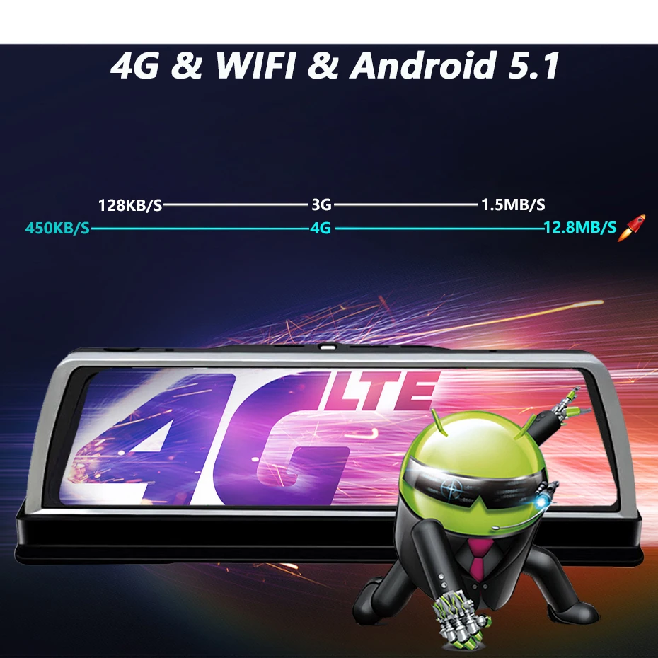 Best WHEXUNE 10" dashboard Rearview mirror 4G Android dash camera 2G RAM 32G ROM GPS Navi video recorder