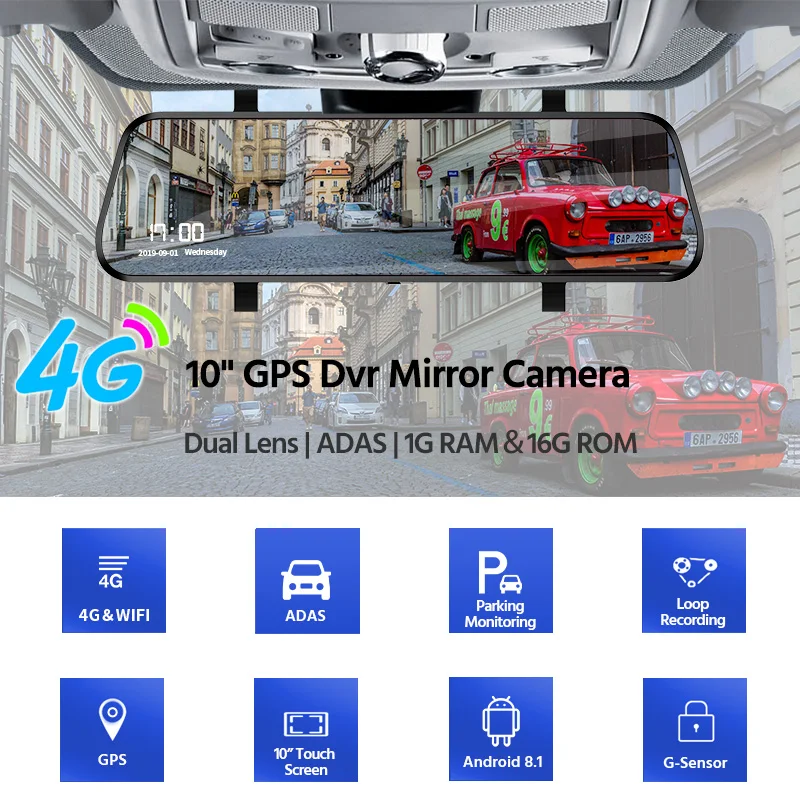 Buy E-ACE D13 Car Dvr 10 Inch Streaming Rear View Mirror FHD Dash Cam 4G Android GPS Navigation Car Cam