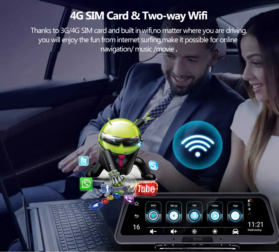 Buy ANSTAR 4G Dash Cam Android Dashboard Car Camera WiFi GPS ADAS Car DVR 1080P Video Recorder Registra