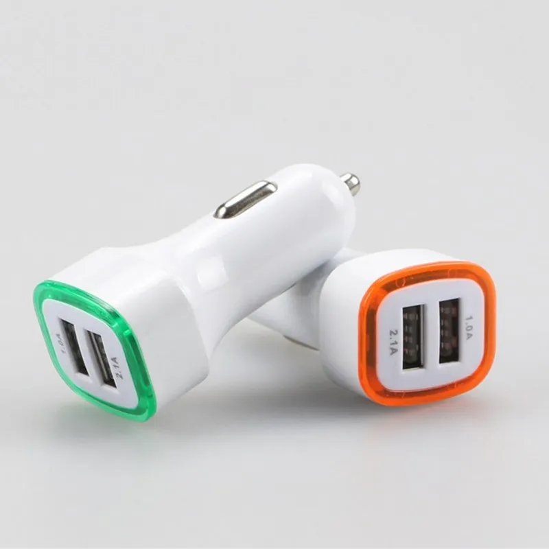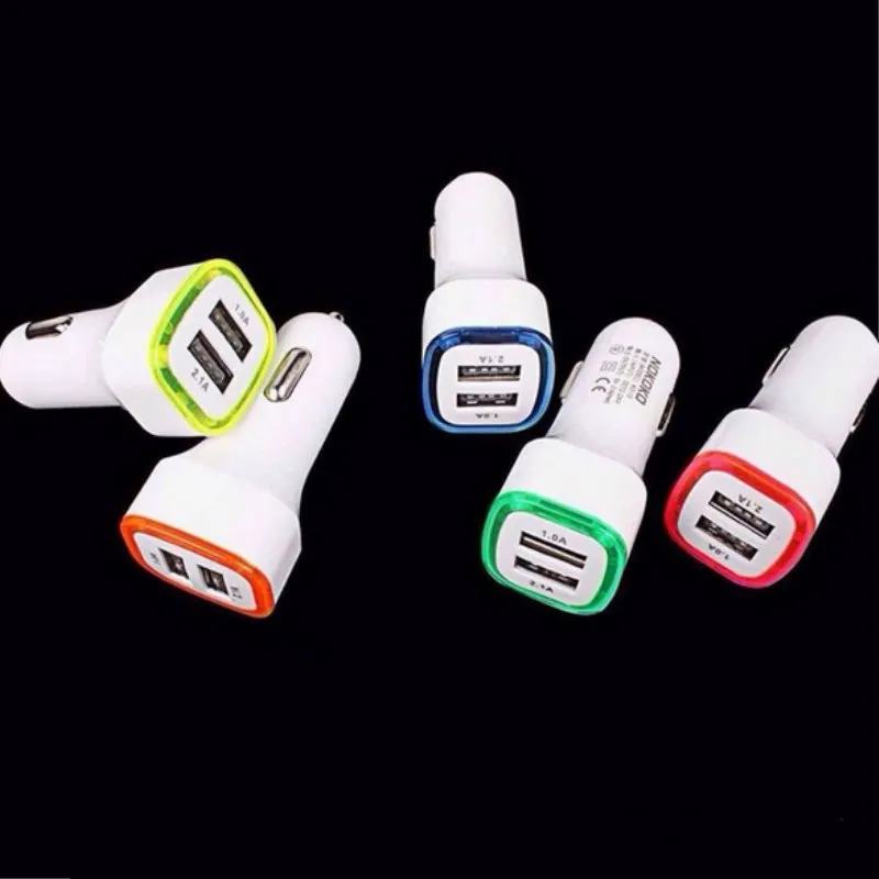New 2.1A 1A LED light ring 2 USB Ports Universal Intelligent Charging Dual USB Car Charger For iPhone S