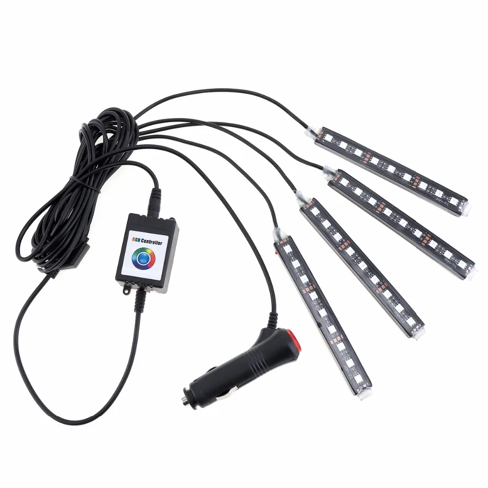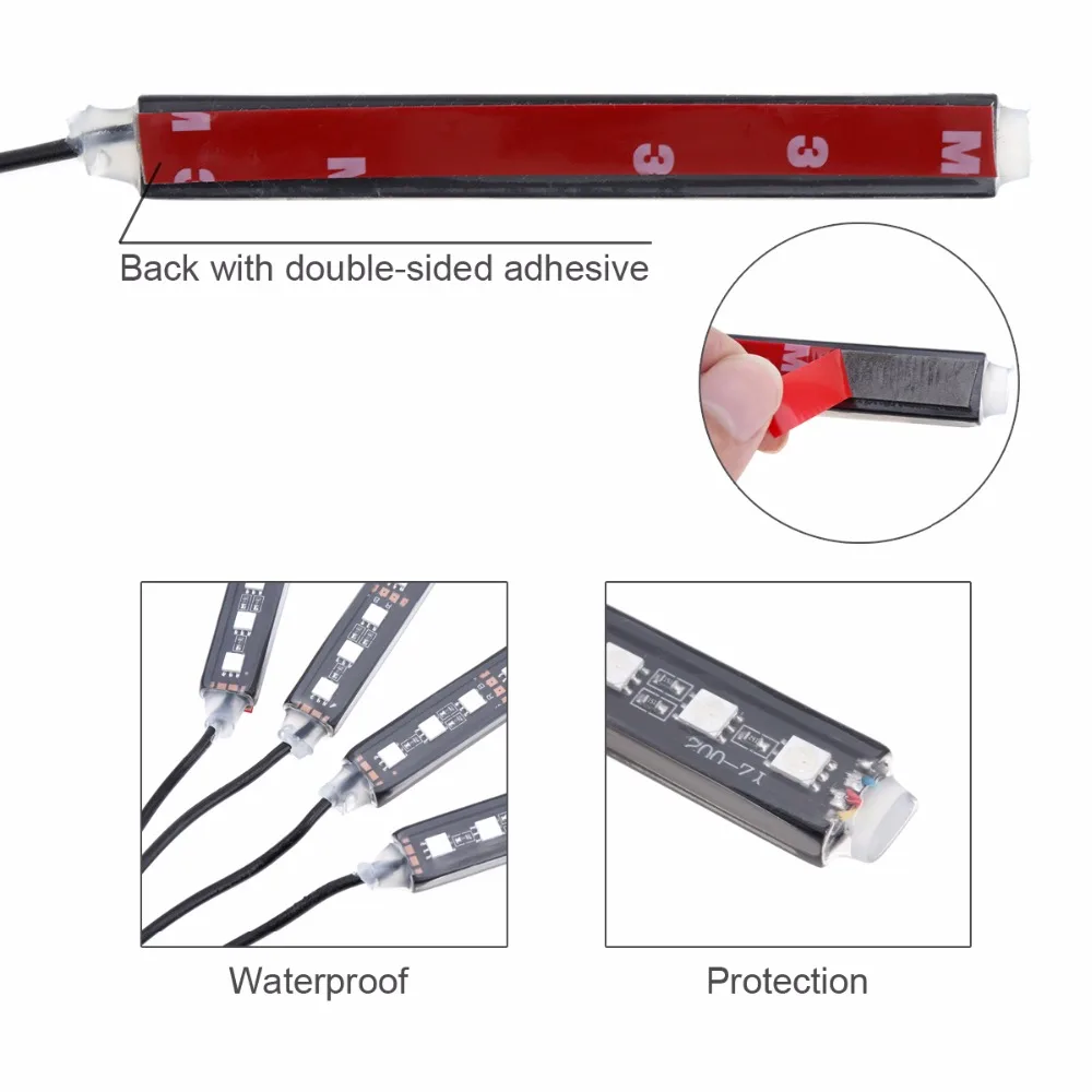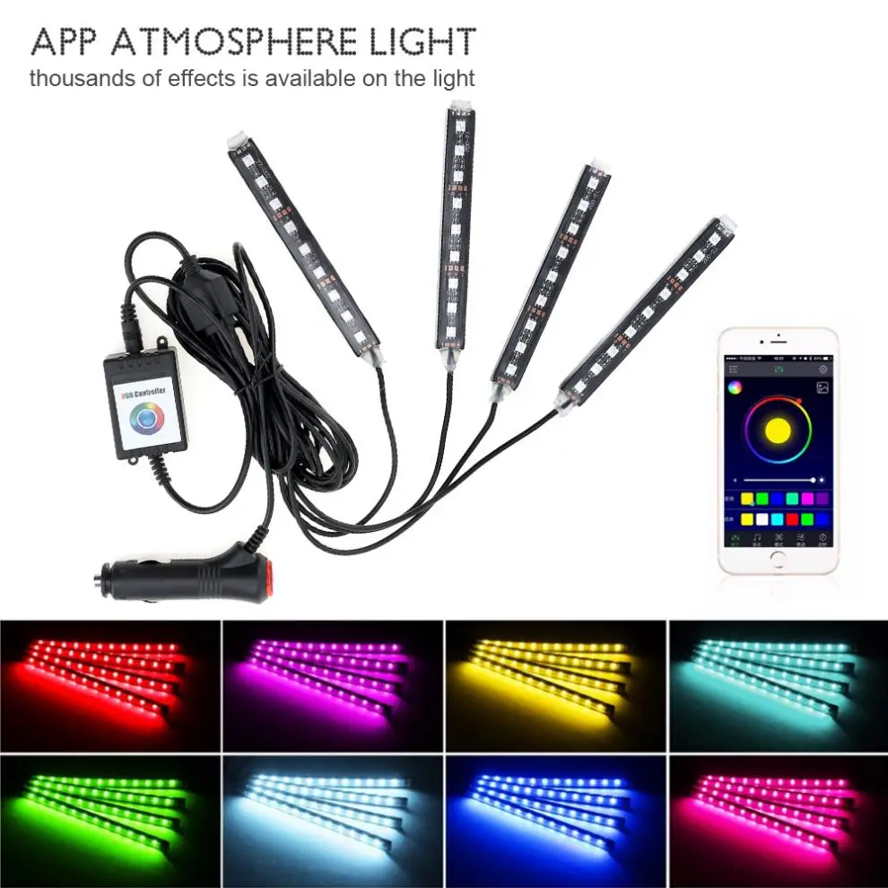 Buy 12V 4pcs Car RGB LED DRL Strip Light 5050SMD Bluetooth Android IOS Phone Control Car Auto Interior