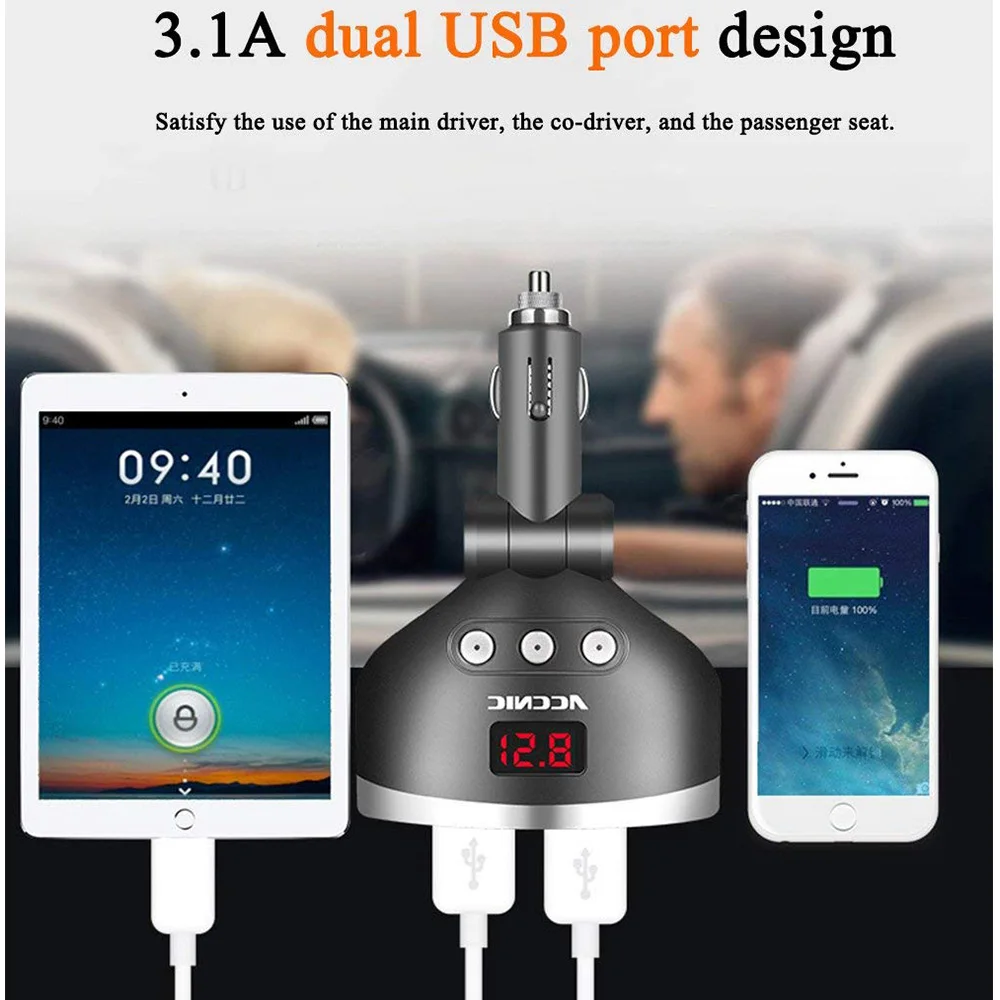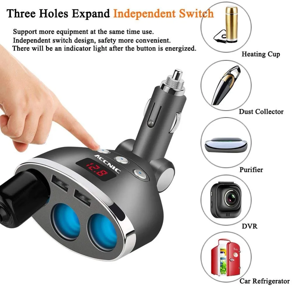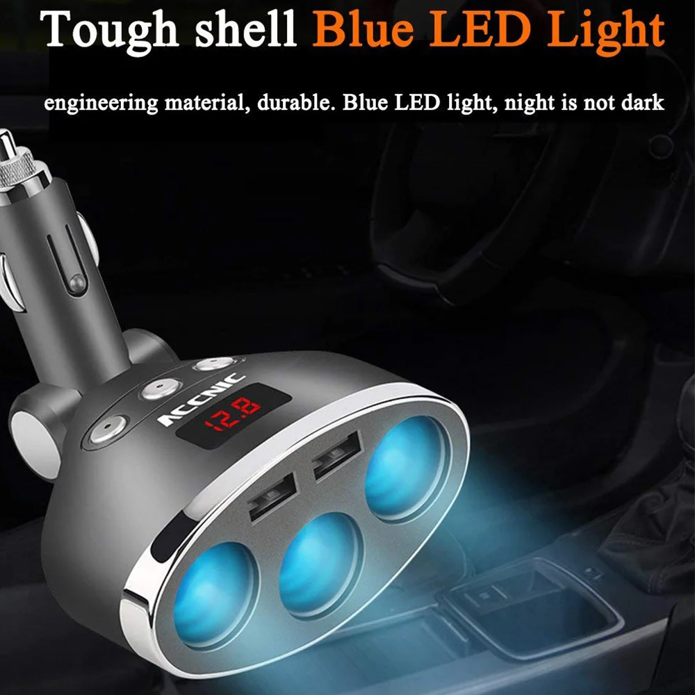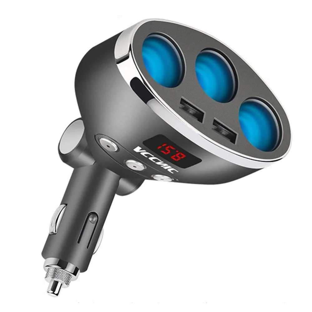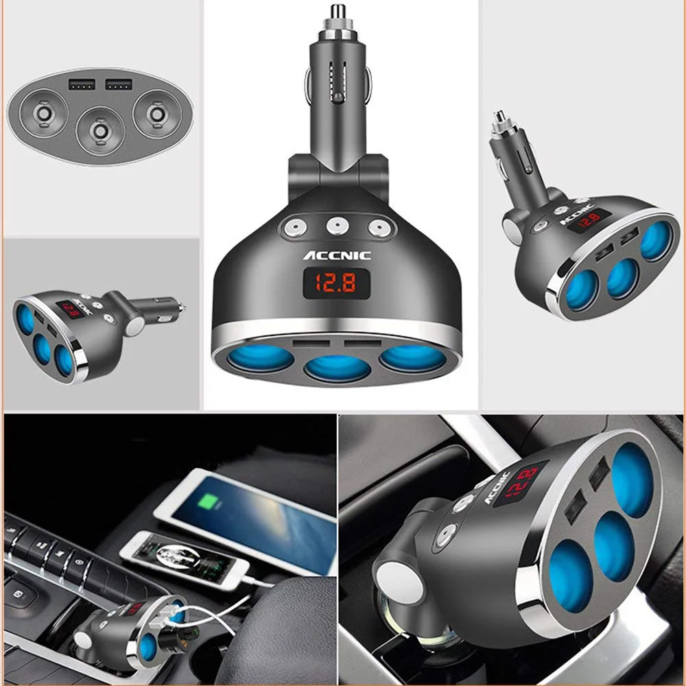 Best 12V USB Socket 3 Way Cigarette Lighter Car Phone Charger Dual USB Port 120W Power Digital LED Displ