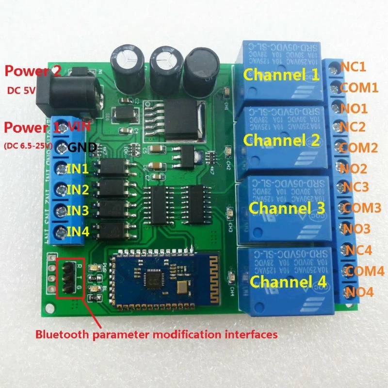 Buy DC 5V 9V 12V 24V 4CH Bluetooth Relay Android App Wireless Remote Controller for Smart Home Motor LE