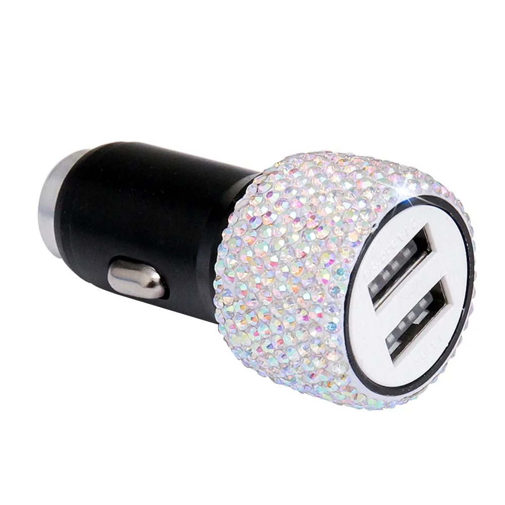 New Dual USB Car Charger 3D Rhinestone Handmade Designed for iPhone Samsung Huawei Xiaomi Apple and And