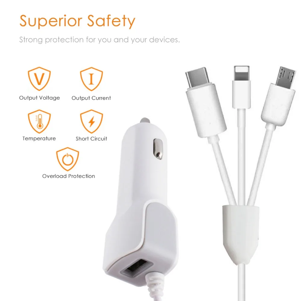 Best 12-24V Fast Car Charger with 3-In-1 Splitter USB Charging Cable LED indicator charger For Micro-USB